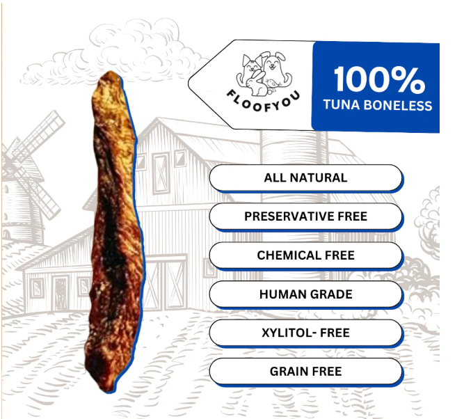 Is your floof allergic to chicken or just a fan of fish? Introducing our tuna boneless jerky strips, a nutritious & flavorful treat. Our premium gourmet grain-free gluten-free single-ingredient strips are specially designed to cater to the most selective of doggos & cattos. Versatile choice for multi-pet households.